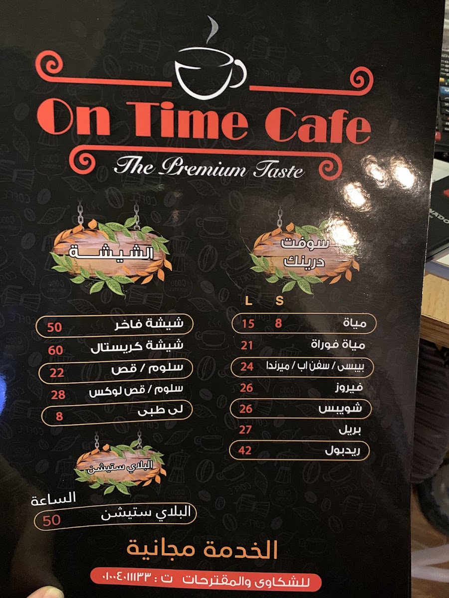Welcome to On Time Café, a charming escape nestled in Dokki, Giza. This café combines a cozy ambiance with an enticing menu that caters to various tastes. Patrons often rave about the fantastic service, particularly from the friendly waiter Nadim, who has a talent for brightening any dining experience.